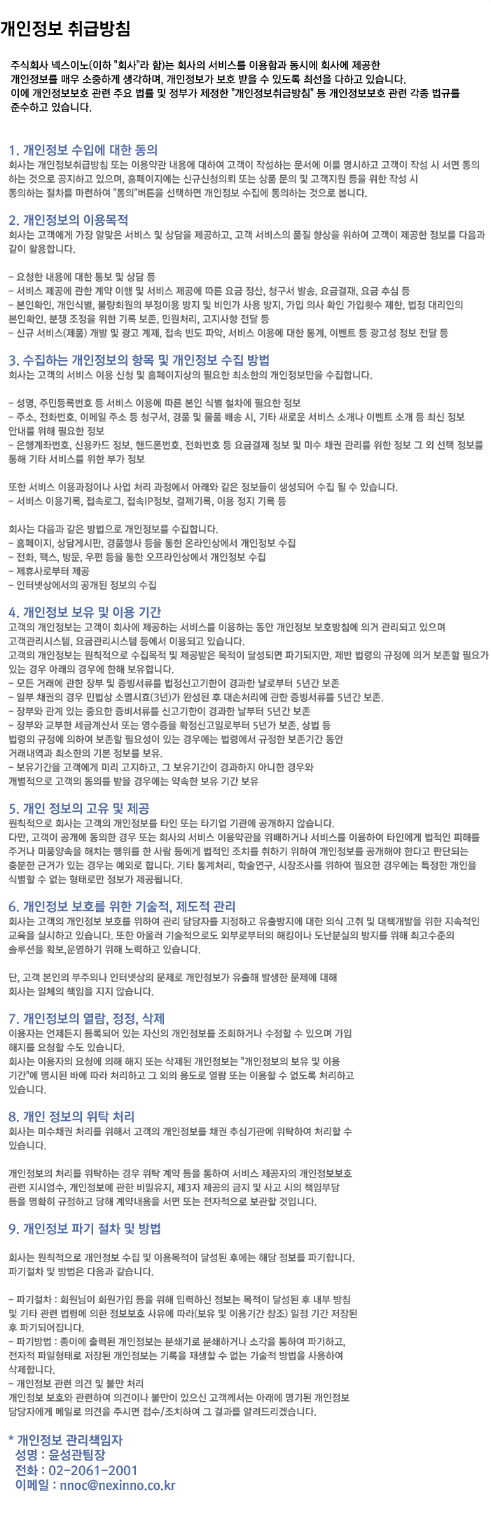 개인정보 취급방침
